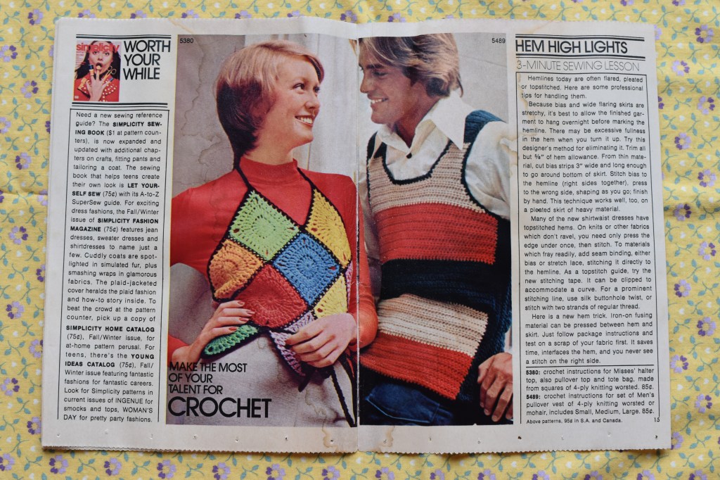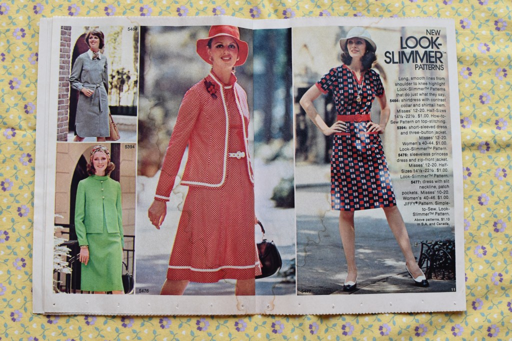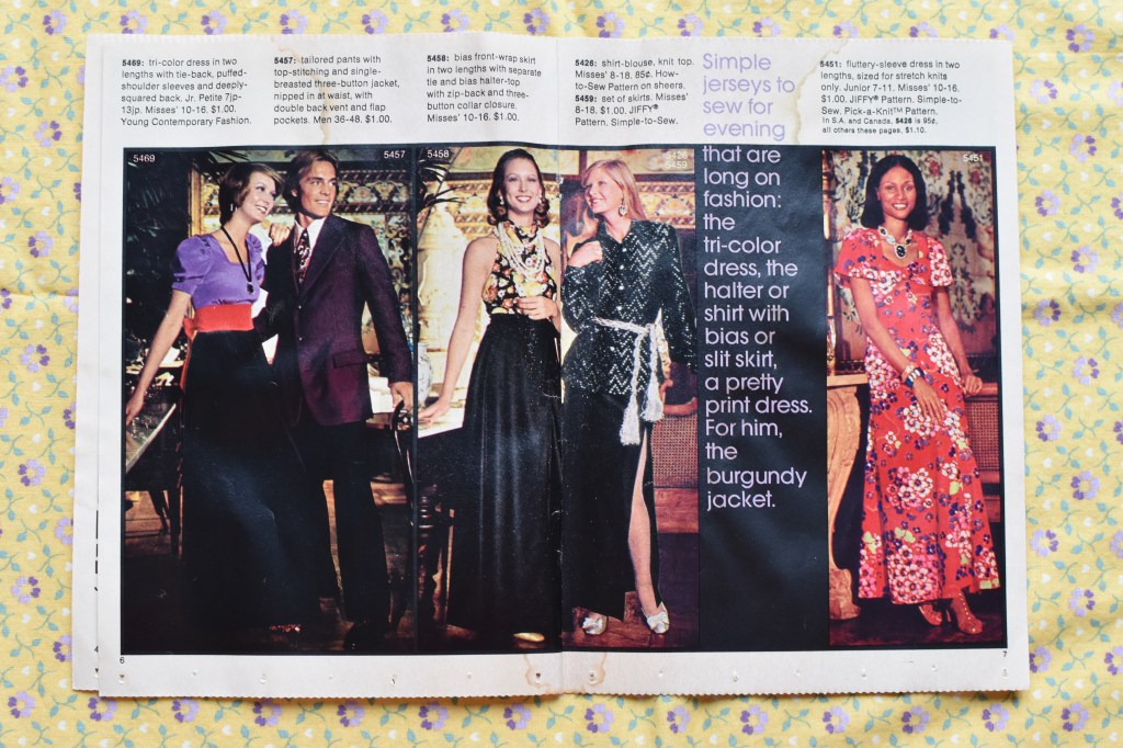 I found quite a few random scraps of 70s sewing material in my grandmother’s sewing stash. It was essentially a time capsule and it appears she only sewed from the late 60s to the early 80s. Many more scans to come, though as seen below, light water damage is a main feature.