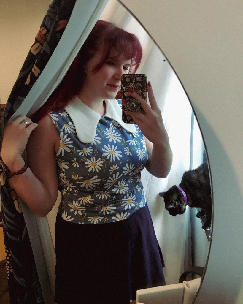 This pattern was actually pretty simple and easy and forgiving. I had a bit of a knits kick this summer after I purchased my refurbished serger and it’s been great. I didn’t do any fitting on this one, though I do need to take in the side just a smidge. Also I did a pretty shit job on the collar, but I was so sick of the scrap fabric I had chosen for the collar that I just didn’t even care at that point.