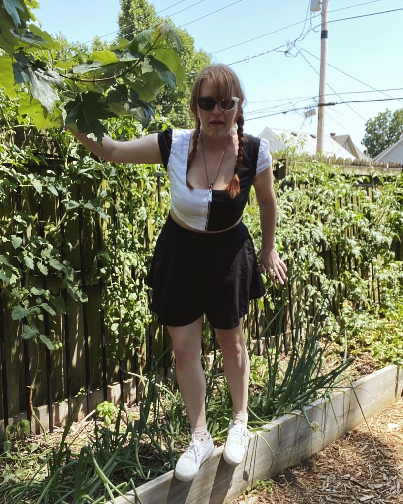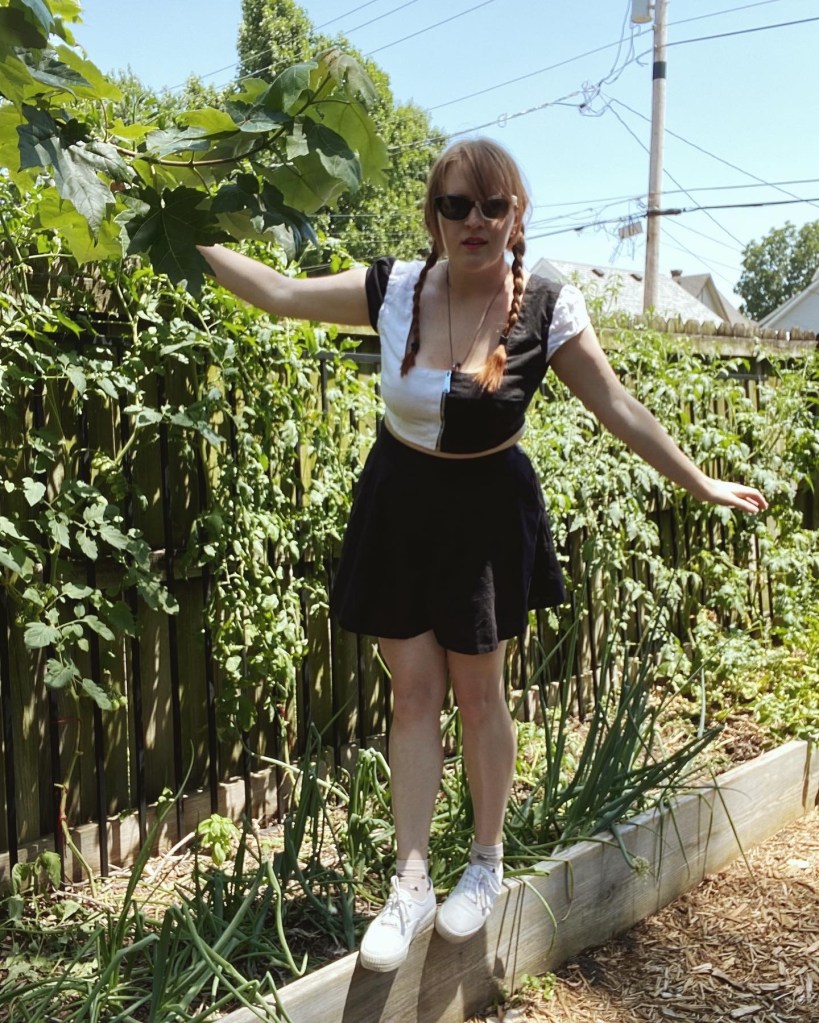 Fit wise, I’m not super happy with it tbh. It’s something I would have to play with more, but the shoulders just don’t sit right and I had to add a ribbon and snaps to connect it to my bra strap to keep it upright. Also the zipper doesn’t stay up which isn’t a huge deal at a music festival, but it’s not great lol. I definitely need to add a hook and eye or something to keep it up. Also if I make this pattern again I would definitely add the lining as recommended in the pattern. I just didn’t have the time or energy for it since this was a bit of a last minute make.