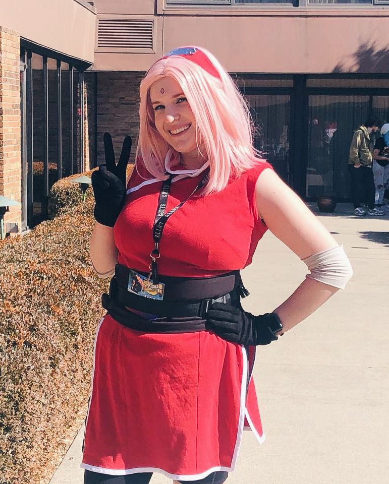 In early 2020, before everything went down, my best blob and I went to Anime Crossroads and I fulfilled middle school Sarah’s dreams and recreated my Haruno Sakura cosplay. It felt appropriate to create a call back to the very first cosplay I ever did way back in 2006 at Ohayocon. Our little group included my brother and best friends and somehow we convinced one of the moms to drive us all the way to this random hotel and drop us off with a little cash and a disposable camera. I had cut up a red jacket and crudely hand sewn on the white accents. I made my mom buy me a spray on hair color and very poorly applied it to the front of my hair. The one thing I splurged on was the headband, but it wasn’t even the right color because I could only afford the cheap smaller version that only came in blue.