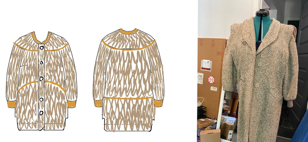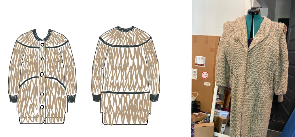 I gave up on the pillows, but I did start on my coat project. I cut out the pattern and I thiiiink I can make it work on this old coat so I mocked up a couple color options