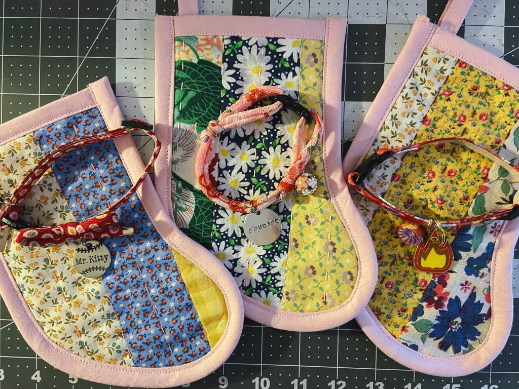 Bad news folks, the Christmas stress has well and truly begun. Maybe next year I’ll get it right. Anyway, I made these little quilted stockings and bought new collars from my cats.