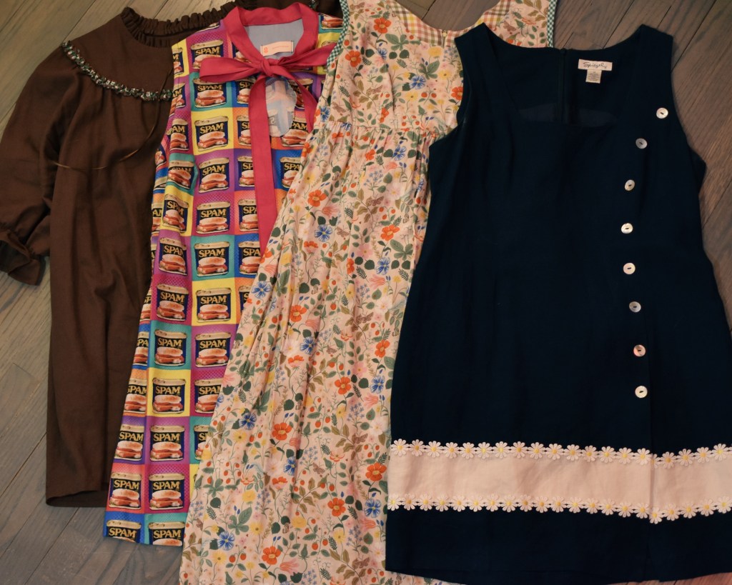 Three of these dresses I made this summer, agonized over details, took ages to make them and wore them 0-1 times each. The nightgown dress I saw an inspo pic a week before Thanksgiving and on a whim I whipped it up just in time for Thanksgiving dinners. I’ve worn it constantly since. I’ve been puzzling about it for weeks. Am I in my earth tones phase? Is it because there’s no restricting waist line? Maybe because there’s no fiddly closure? All of the above? At any rate, I kind of wish I was wearing that dress right now.