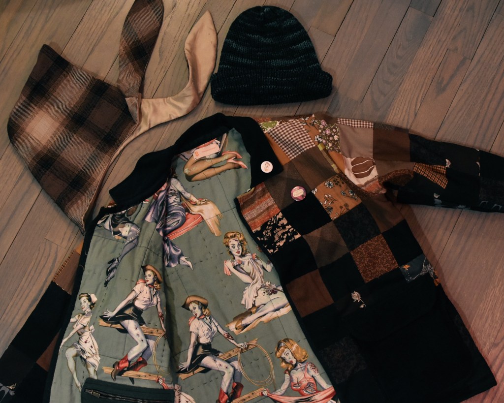 My piece that gets the most attention out of anything I wear. If I don’t feel like talking to people in public, I can’t wear this jacket because I will get stares and comments lol. It’s so warm and cozy, but I still haven’t sewn on the snaps so it flys open all the time. I also whipped up Spaghetti Western’s headscarf when I want to feel like an old timey grandma, and here is my favorite machine knit hat that I wear literally every day.